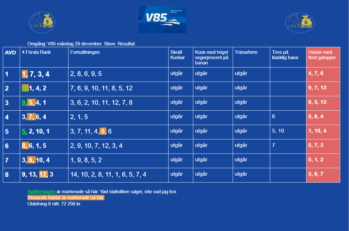 V85 Måndag.